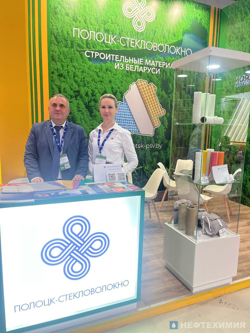 На выставке «Полоцк-Стекловолокно» представило ряд материалов — стеклоткани, стеклянные и композитные сетки, нетканые материалы, рулонный стеклопластик, негорючую мембрану. Особый интерес посетителей вызвали сетки для армирования фасадов и негорючие мембраны для вентилируемых фасадов.