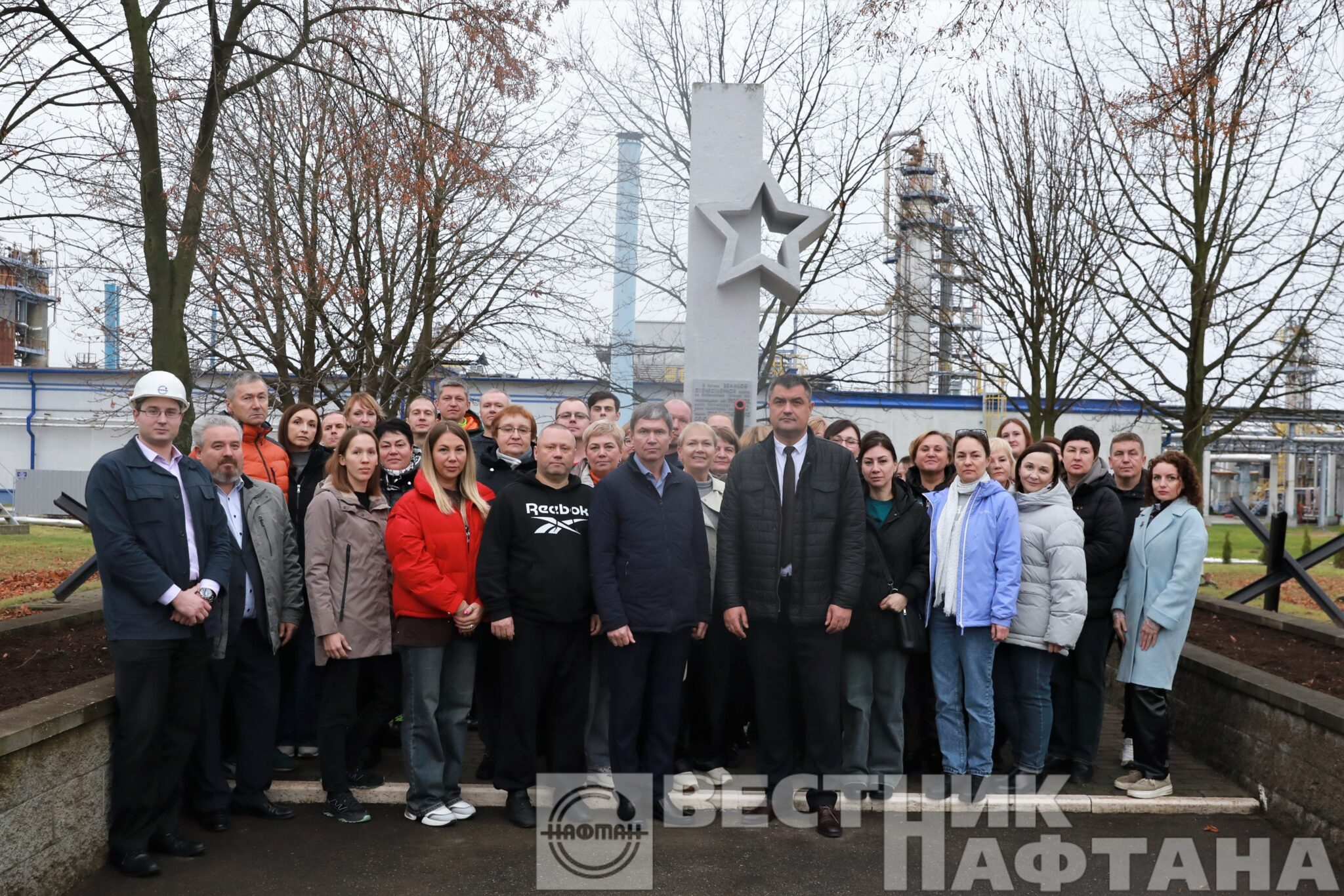 Также российская делегация посетила мемориал воинам-освободителям деревни Троицкое, расположенный на территории предприятия. Председатель профкома ОАО «Нафтан» Игорь Батурин познакомил гостей с историей этого места. Профактивисты почтили память павших минутой молчания и возложили цветы к подножию мемориала.