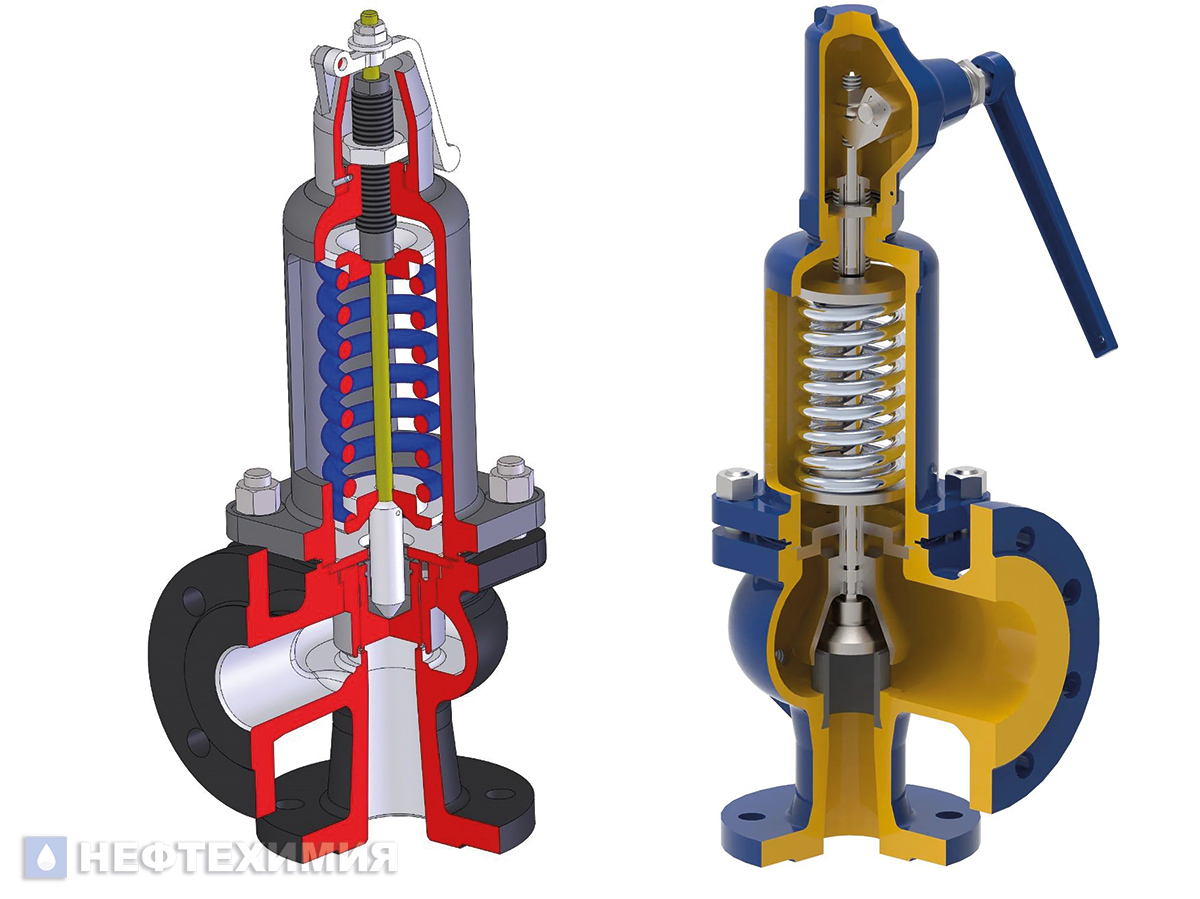 Сердце большинства ПК — тарельчатый затвор, прижатый к седлу усилием пружины. Когда давление среды превышает силу сжатия пружины (давление настройки), тарелка приподнимается, начинается сброс. После снижения давления клапан закрывается.