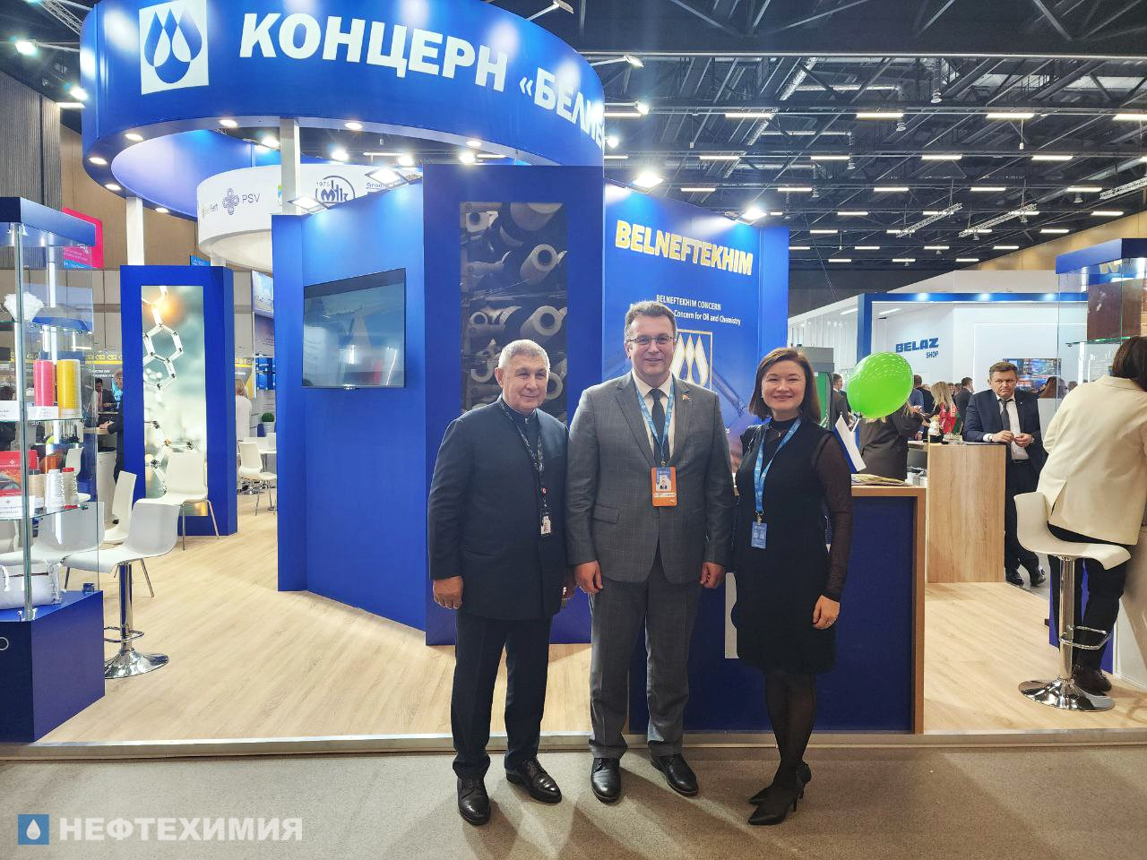 Объединенный стенд белорусских нефтехимиков посетил президент Академии наук Республики Татарстан Рифкат Минниханов
